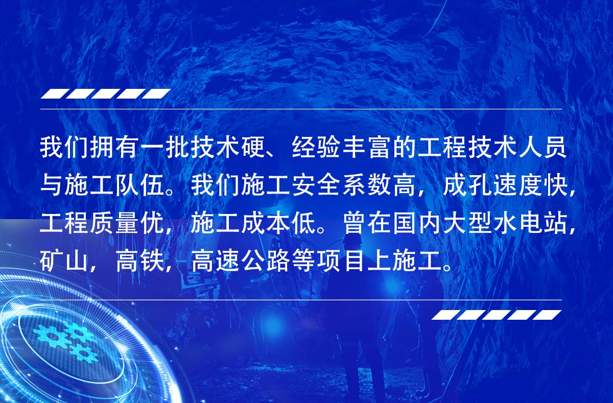 淮北市勤拓礦山工程有限公司是一家從事多年反井鉆機施工的服務生產(chǎn)型公司,公司目前有十幾臺鉆機設(shè)備,ZFY120/30/150型反井(天井)鉆機5臺,ZFY1.8/40/250型反井(天井)鉆機4臺,ZFY2.5/70/200型反井(天井)鉆機2臺,ZFY3.0/120/400型反井鉆機1臺,ZFY3.5/120/400型反井(天井)鉆機1臺,可承接深度0-300米,成孔直,0.9~4米.1.2~3米的各種豎井、井下煤倉、溜煤眼、通風井、調(diào)壓井、電纜井、泄水井等。我們擁有一批技術(shù)硬、經(jīng)驗豐富的工程技術(shù)人員與施工隊伍。我們施工安全系數(shù)高,成孔速度快,工程質(zhì)量優(yōu),施工成本低。曾在國內(nèi)大型水電站,礦山,高鐵,高速公路等項目上施工。